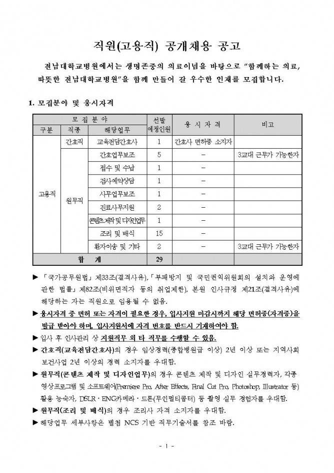25.09.26 ~ 25.10.102025년 전남대학교병원 직원(고용직 간호사 등) 공개채용 공고