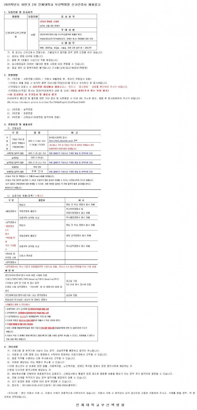 25.11.11 ~ 25.11.242025학년도 하반기 2차 간호국 정규직 신규간호사 채용공고