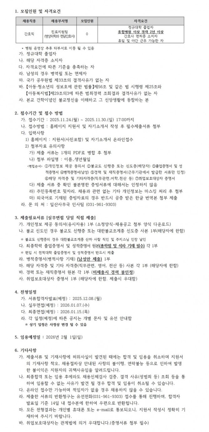 25.11.24 ~ 25.11.30정규직 간호사(영상의학과 전담간호사) 채용 공고