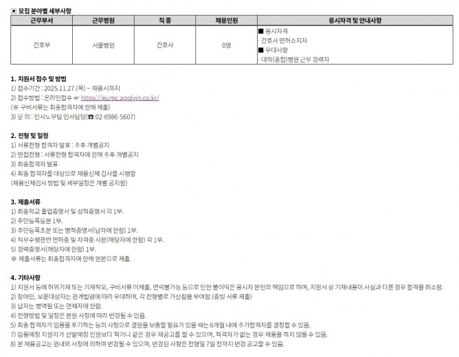 25.11.27 ~ 25.12.04간호부 계약직 간호사(외래) 공개채용 공고