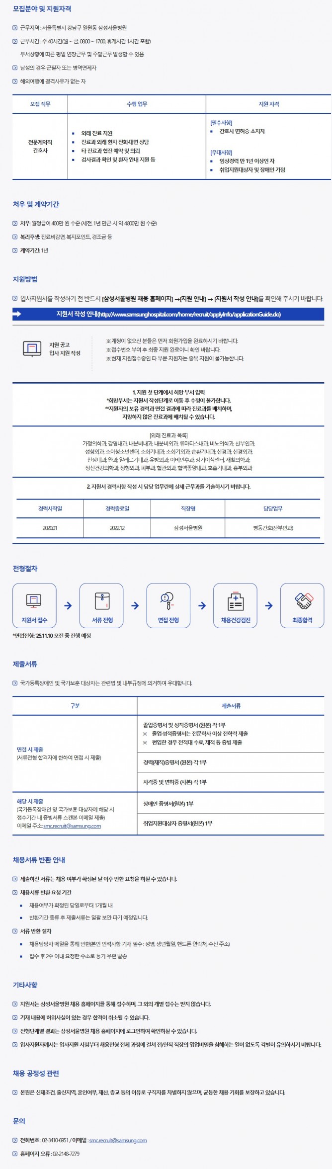25.12.02 ~ 25.12.05간호본부 외래 계약직 간호사 12월 정기채용