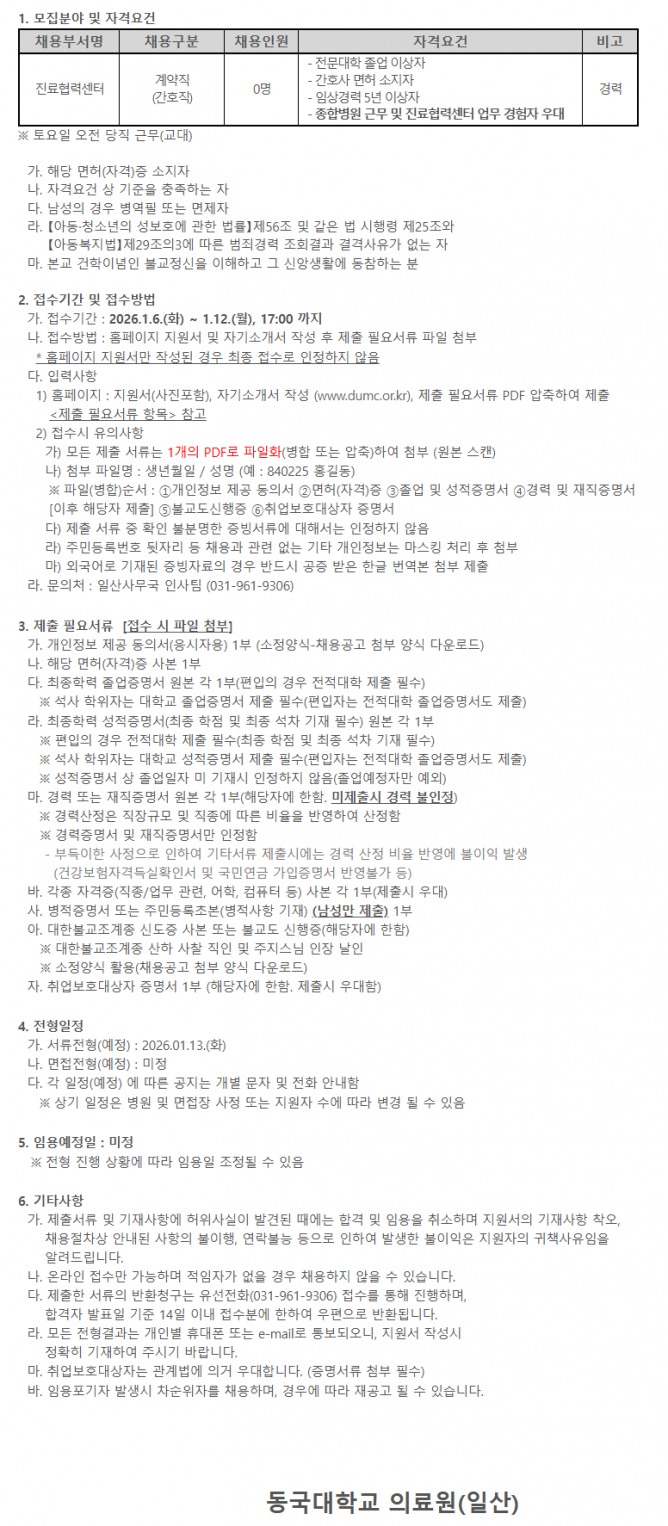 26.01.06 ~ 26.01.12진료협력센터 계약직원(간호직) 채용 재공고