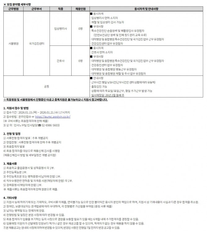 26.01.15 ~ 26.01.21국가검진센터 계약직 직원 공개채용 공고