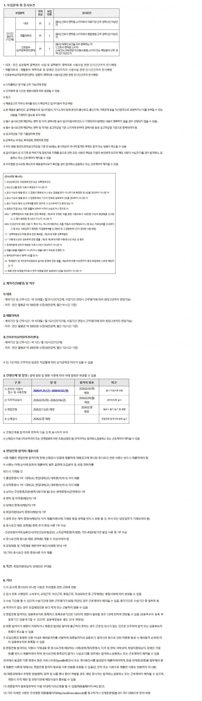 26.01.23 ~ 26.02.02단시간일반직_간호직(내과, 재활의학과, 상처장루관리센터) 채용공고