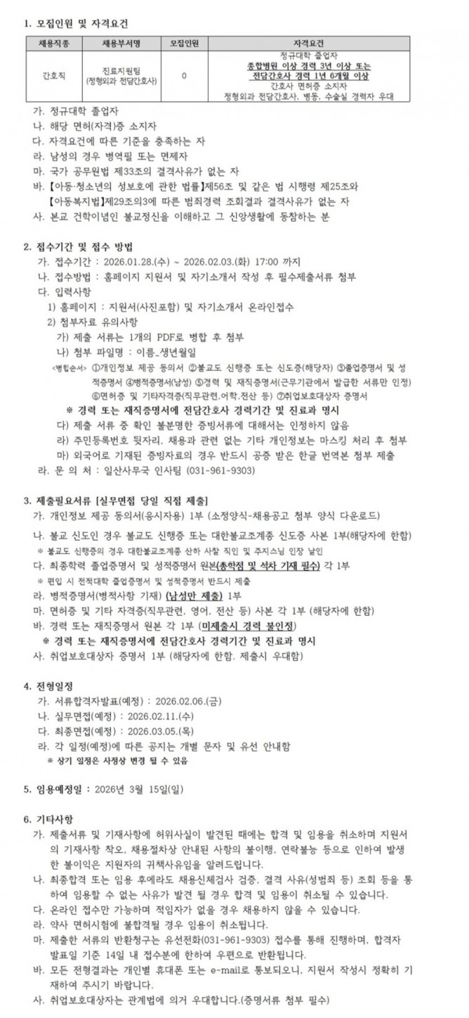 26.01.28 ~ 26.02.03정규직 간호사(정형외과 전담간호사) 채용 공고