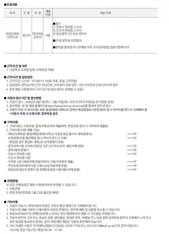 26.02.05 ~ 26.02.192026년도 조산사 보유 야간전담 간호사 채용