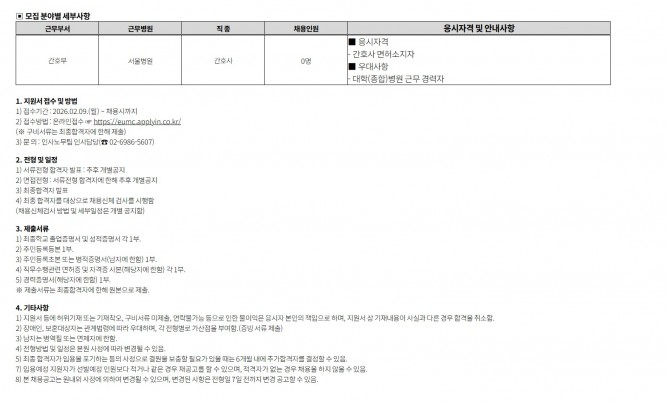 26.02.09 ~ 26.02.15간호부 계약직 간호사(외래) 공개채용 공고
