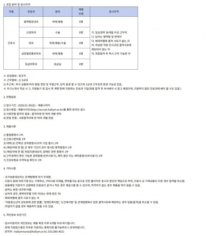 26.02.13 ~ 26.02.18간호부 정규직 전담간호사 공개채용 공고