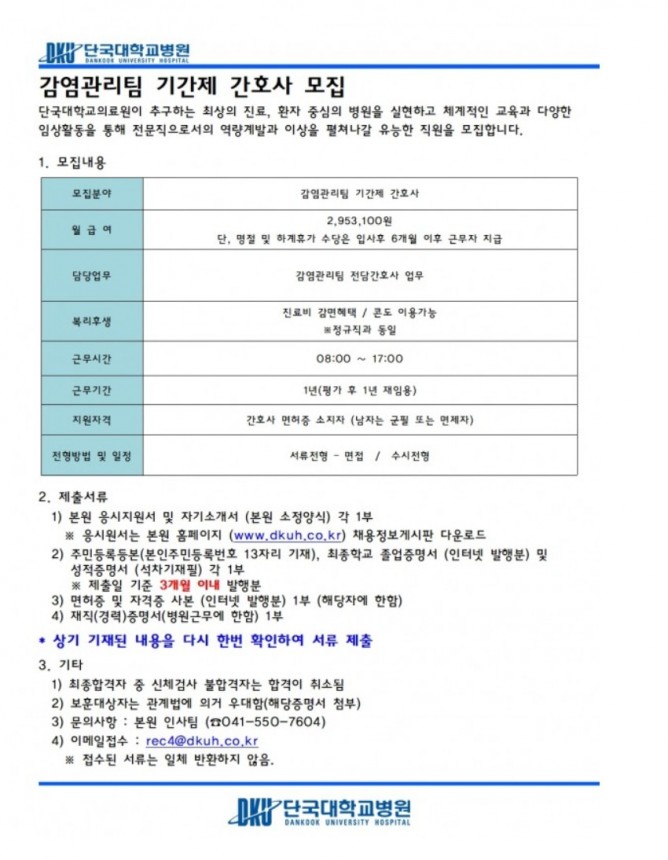 26.02.13 ~ 26.02.19감염관리팀 기간제 간호사 모집