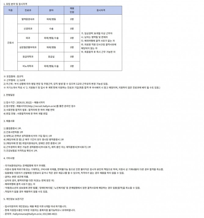 26.02.19 ~ 26.02.25간호부 정규직 전담간호사 공개채용 공고