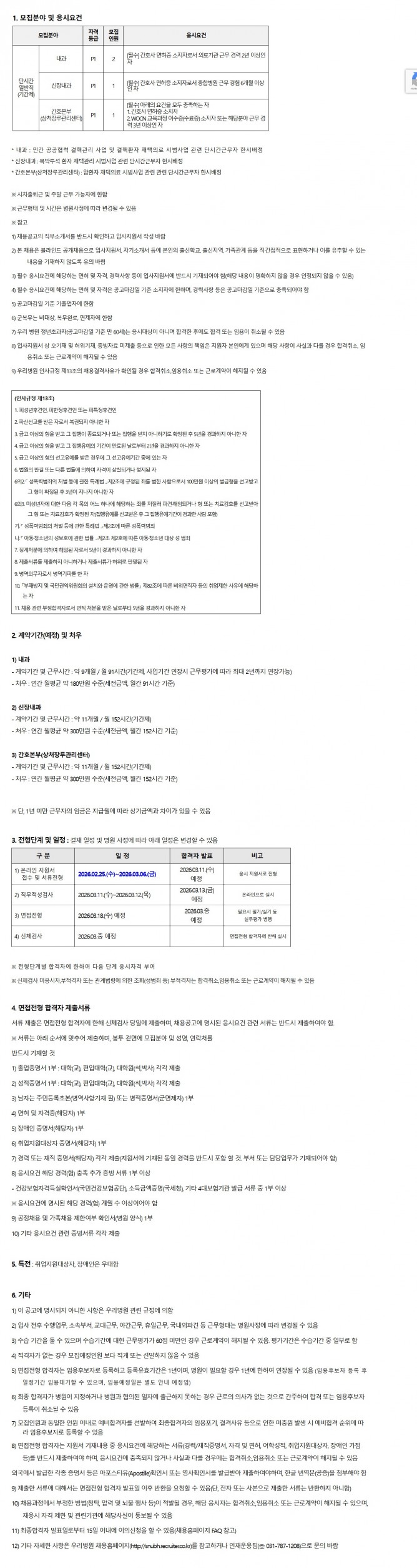 26.02.25 ~ 26.03.02단시간일반직_간호직(내과, 신장내과, 상처장루관리센터) 채용공고