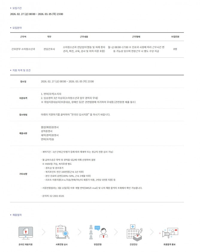 26.02.27 ~ 26.03.05간호본부 소아청소년과 전담간호사 모집