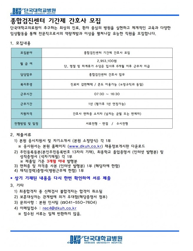 26.02.27 ~ 26.03.05종합검진센터 기간제 간호사 모집
