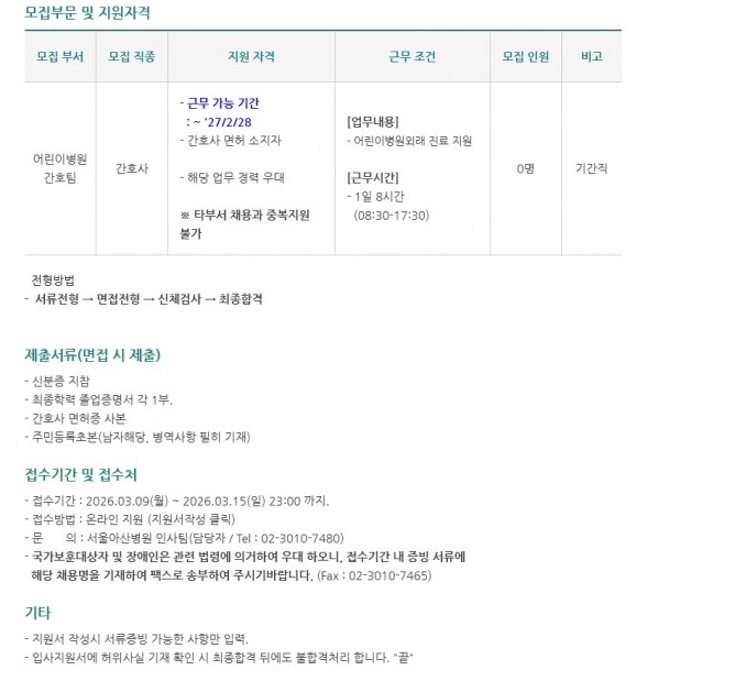 26.03.09 ~ 26.03.15어린이병원간호팀 간호사 모집