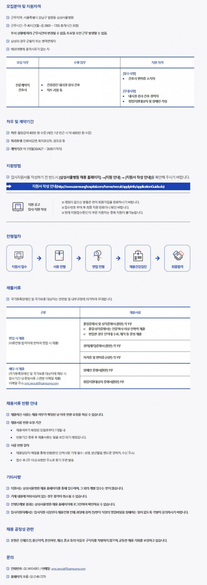 26.03.12 ~ 26.03.23건강의학본부 계약직 간호사 채용(기간한정)