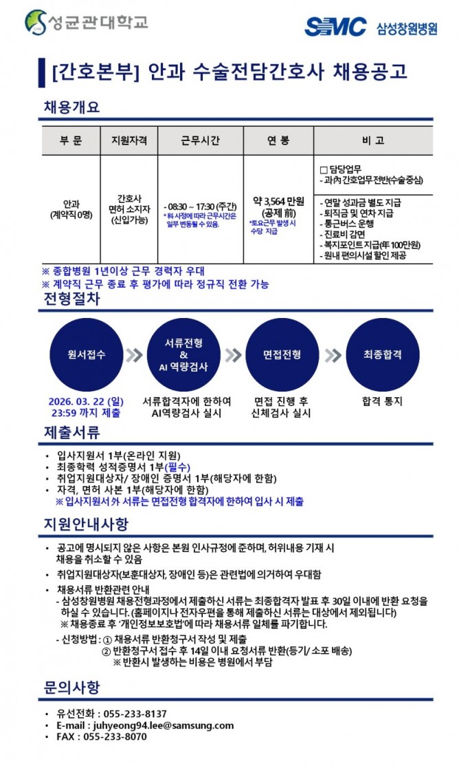 26.03.16 ~ 26.03.22[간호본부] 안과 전담간호사 채용공고