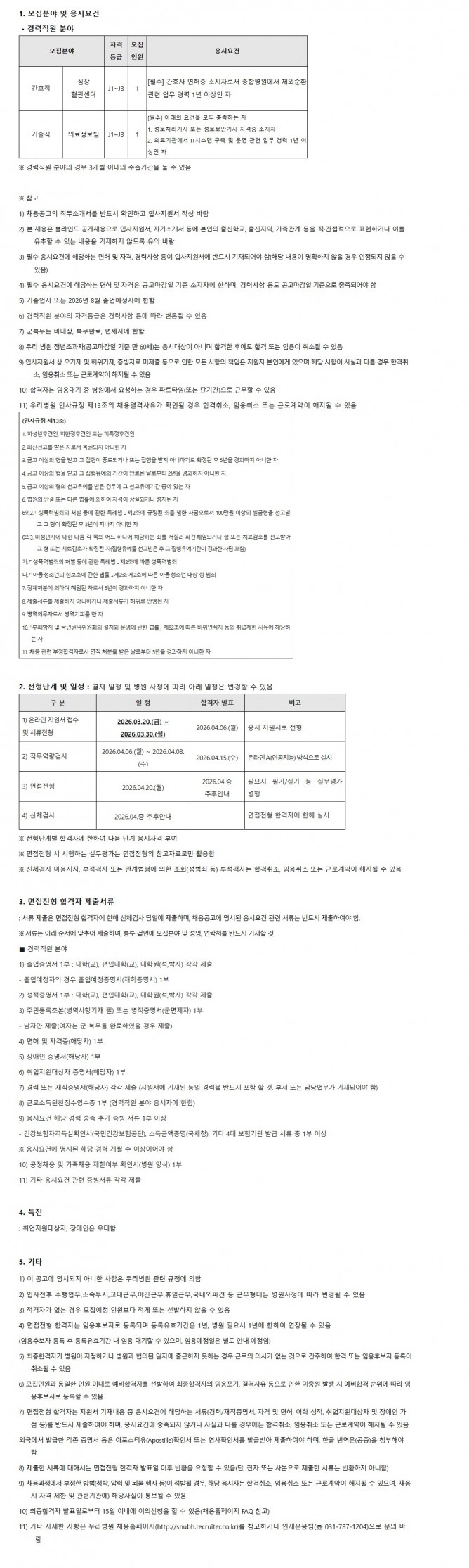 26.03.20 ~ 26.03.30경력(간호직, 기술직) 직원 채용공고