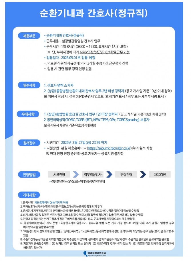 26.03.23 ~ 26.03.27순환기내과 간호사(정규직)