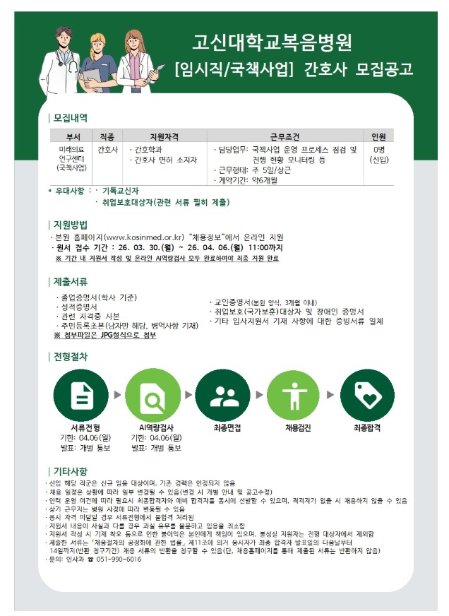 26.03.30 ~ 26.04.06[임시직] 간호사(국책사업)