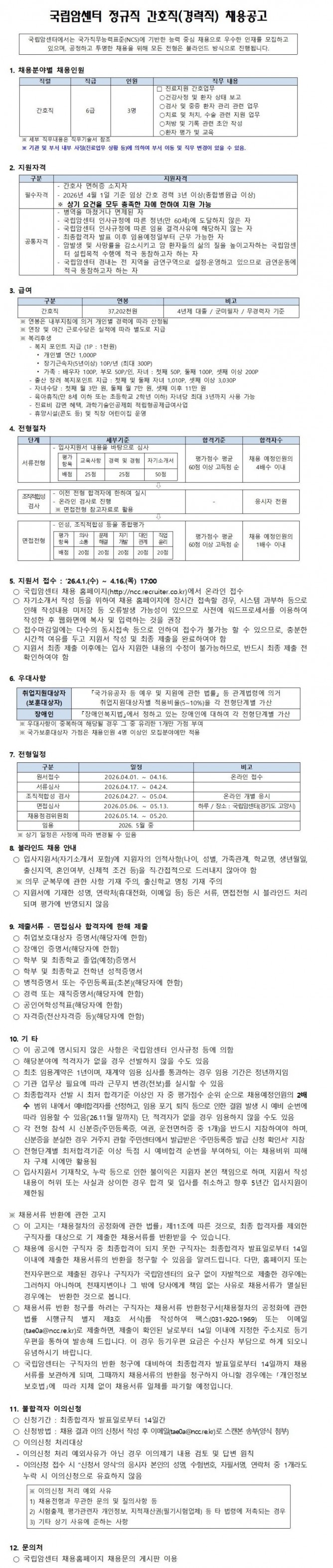 26.04.01 ~ 26.04.16정규직 간호직(경력직) 채용공고
