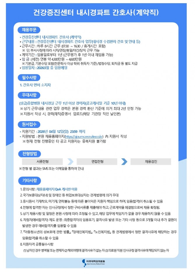 26.04.03 ~ 26.04.12건강증진센터 내시경파트 간호사(계약직)