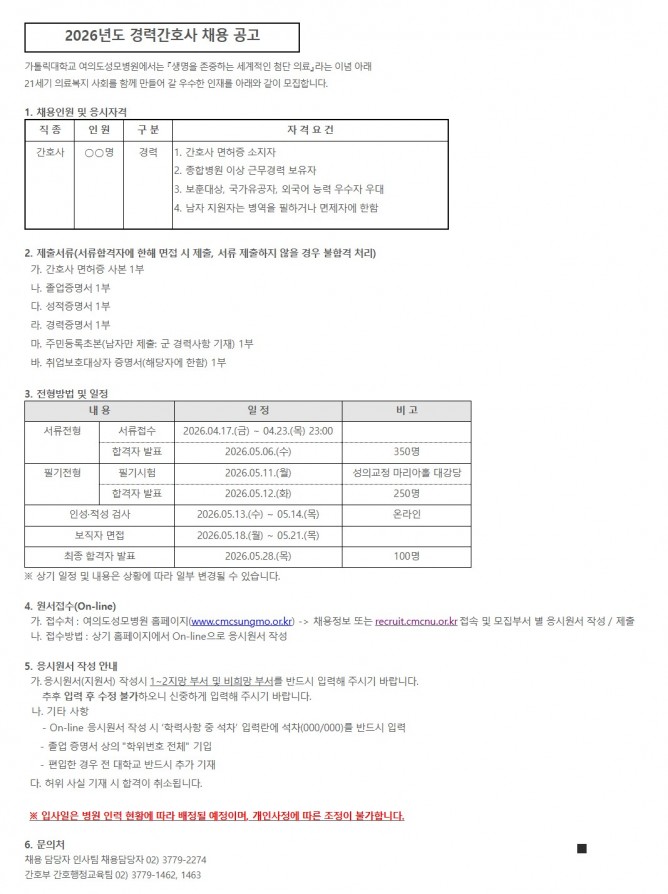 26.04.17 ~ 26.04.232026년 경력간호사 채용 공고